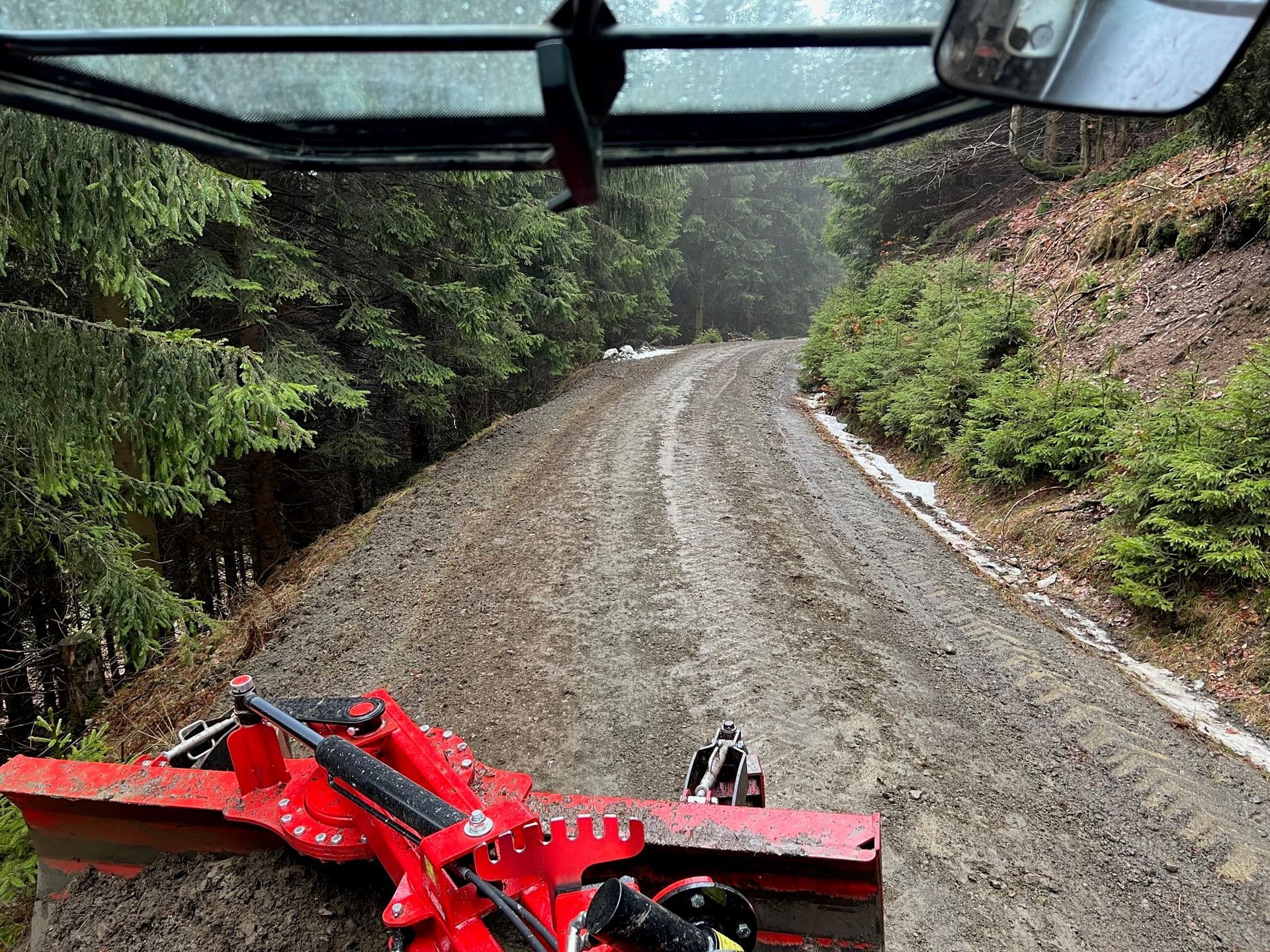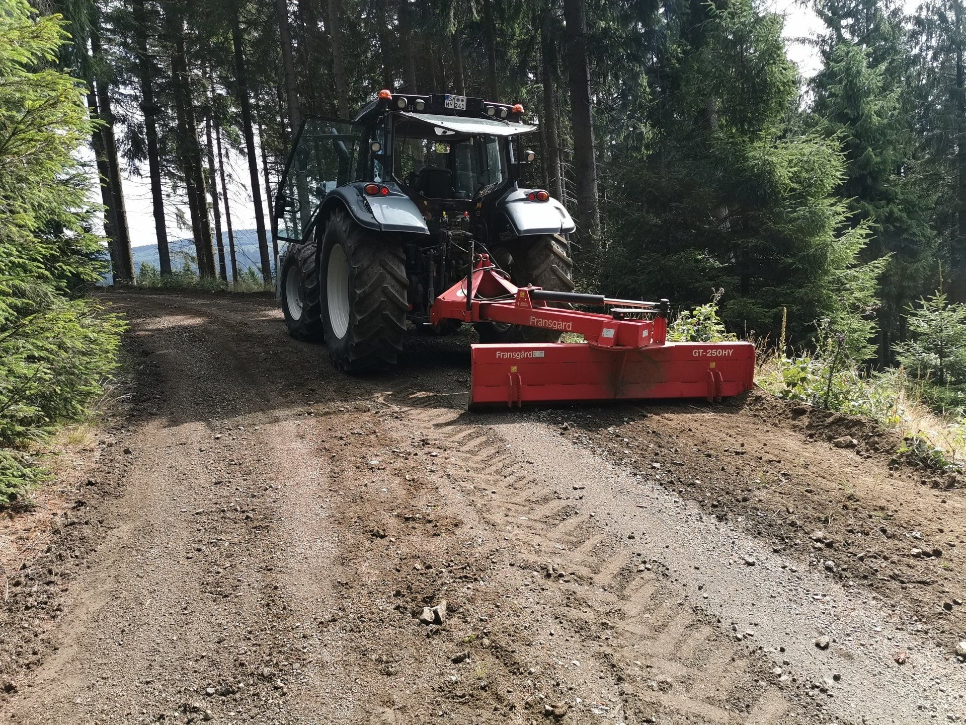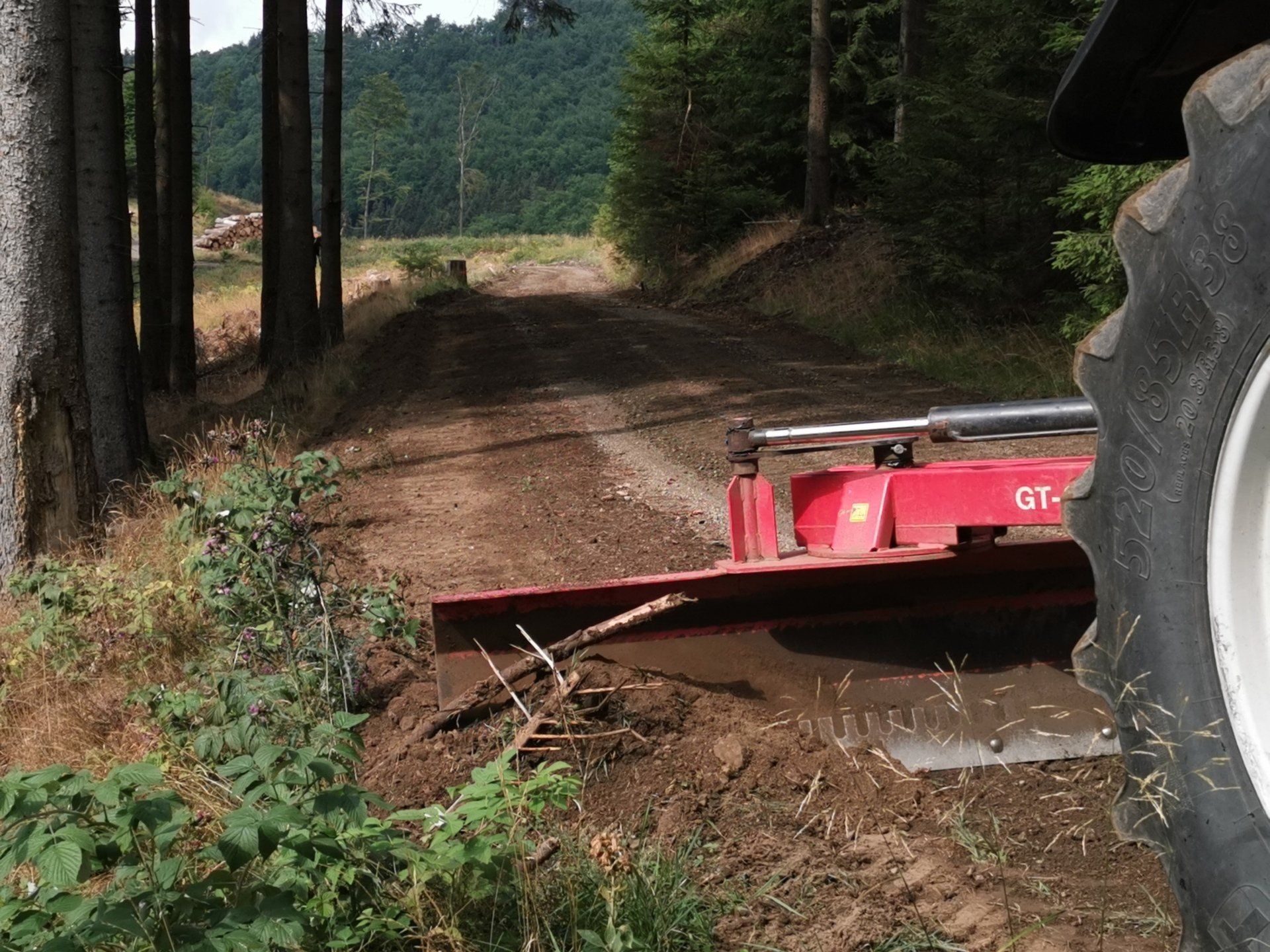 + Forstwege pflegen, Wasserführung wieder herstellen, Wegeprofil nacharbeiten mit Grader